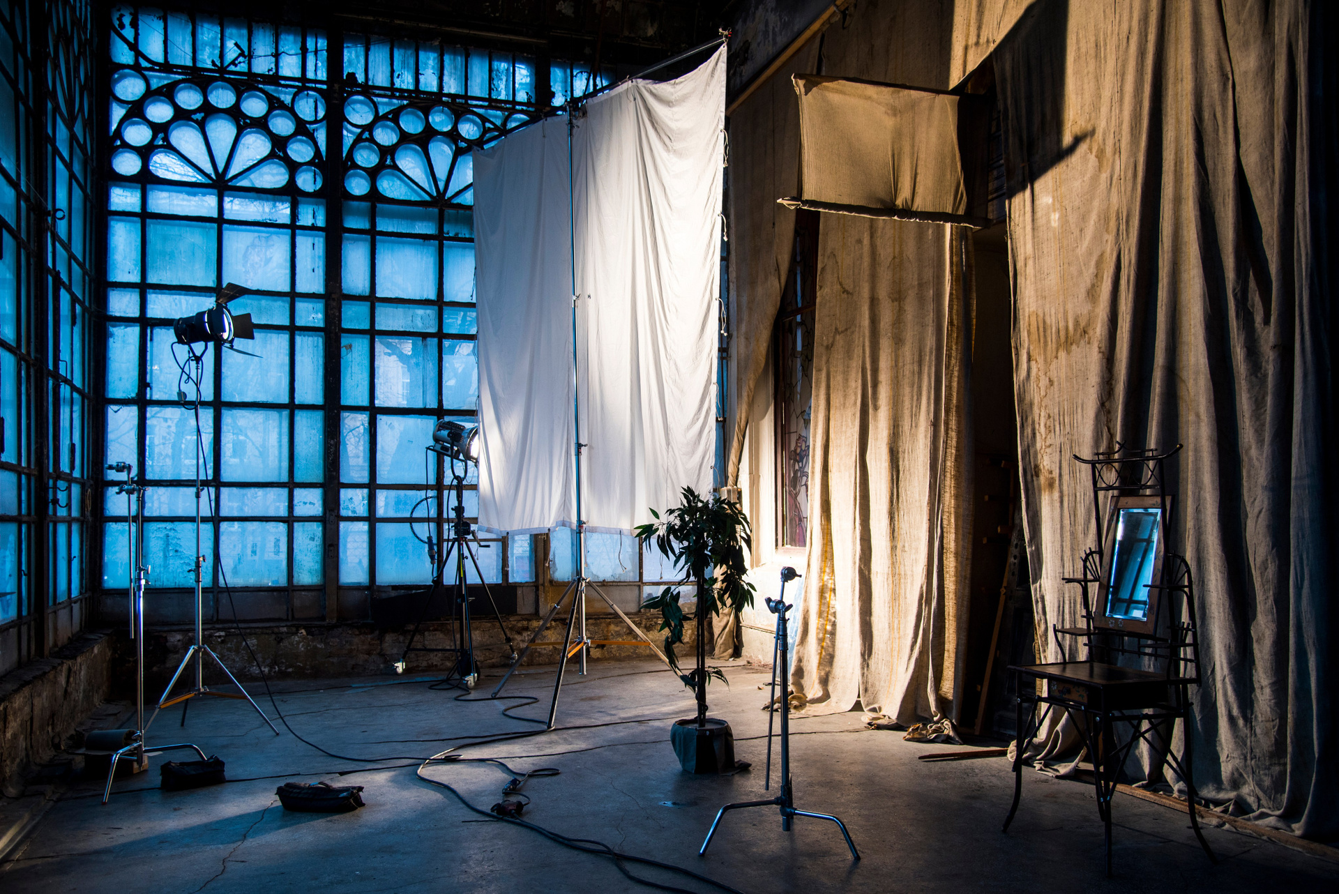 Мой любимый жанр, наравне с уличной съемкой. + 50 к невидимости (фотограф-ниндзя). Закулисье кинематографа, нужно снимать незаметно, никому не мешать и никогда не влезать в кадр, при этом отснять актеров, команду, процесс во время подготовки и во время съемки. В этом жанре я нашел свои творческие приемы, которые использую в других жанрах: силуэт, тень, фрейминг, контраст, баланс, акцент, ритм, перспектива, курьез и т. д.